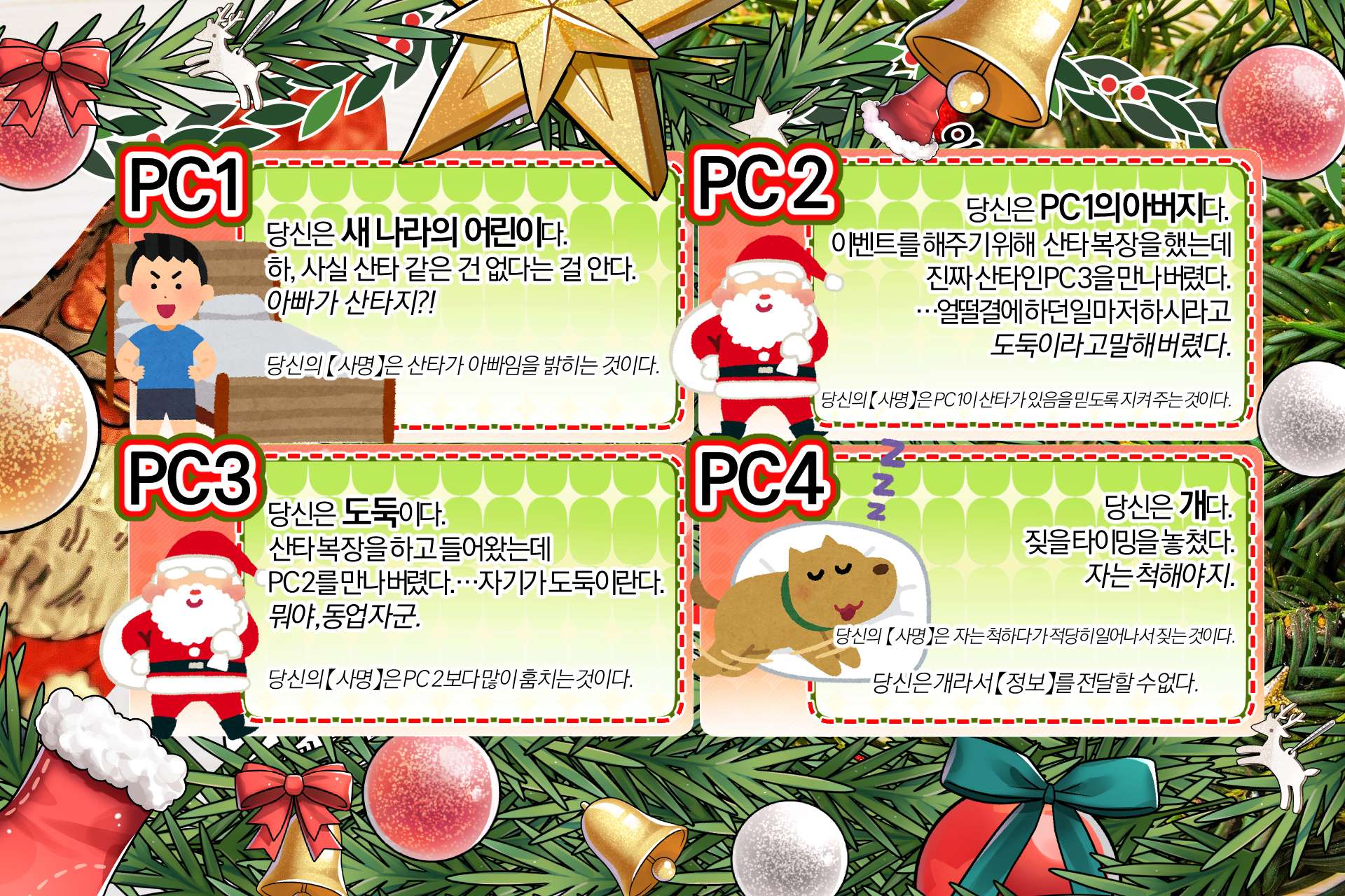 - 시나리오 약칭은 <클SAN타>정도로 부탁드립니다.